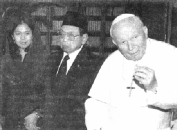 Sabtu 5 April 2000, Gus Dur bersama Ibu Negara Shinta Nuriyah dan rombongan dari Indonesia mengunjungi Paus Yohannes Paulus II di Vatikan. Di ruang kerjanya, Paus Yohanes Paulus II menyambut Gus Dur dengan hangat. “Selamat Datang, Selamat Datang”, kata Paus dalam bahasa Indonesia. Kunjungan ini sangat istimewa karena Gus Dur mengakhiri “kebekuan” tradisi kunjungan Presiden Indonesia ke Vatikan yang selama 28 tahun kosong setelah kunjungan terakhir Soeharto di tahun 1972.