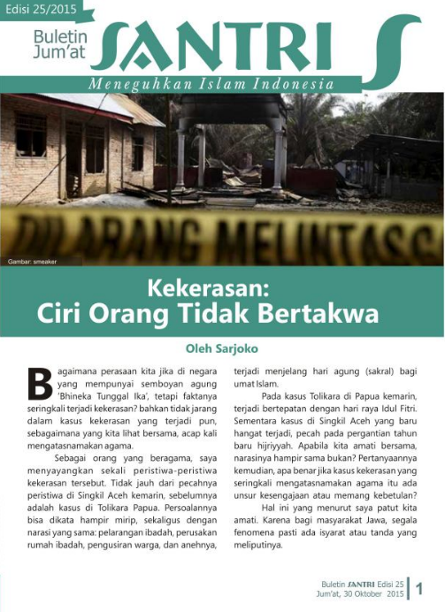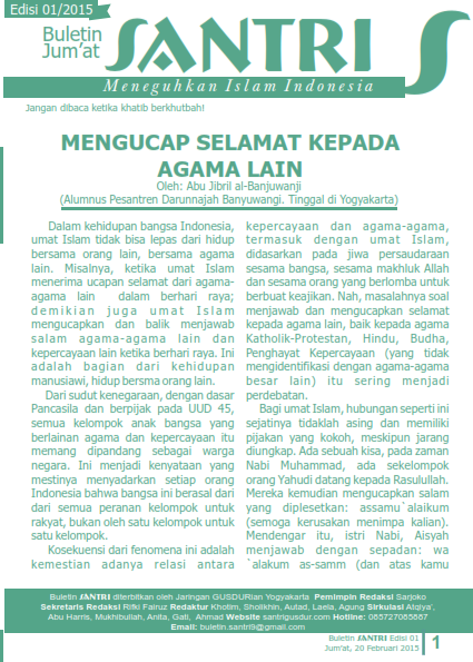 Beletin SANTRI adalah buletin yang di terbitkan Komunitas GUSDURian Jogja setiap hari jumat.